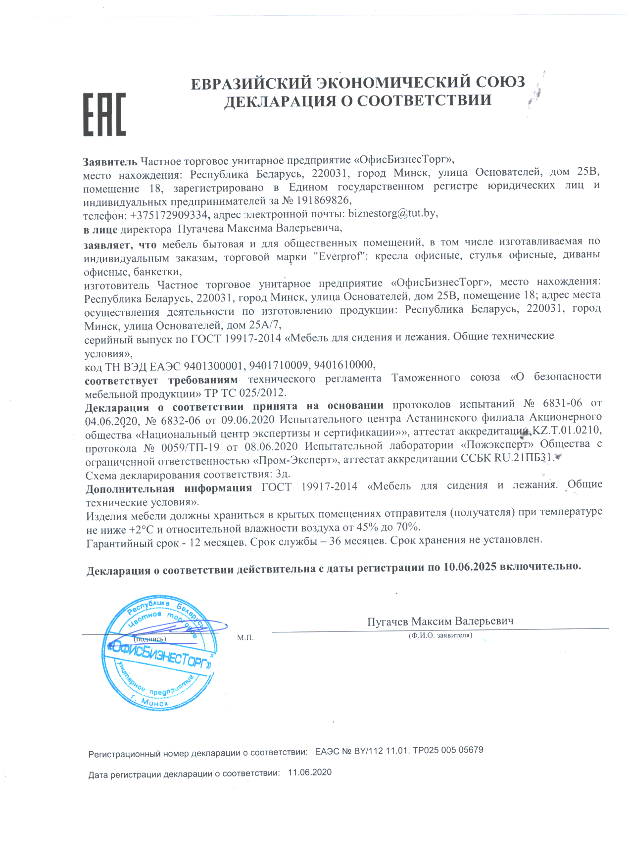 Производитель ЧТУП «ОфисБизнесТорг», 220031 г.Минск, ул.Основателей, 25В, пом.18